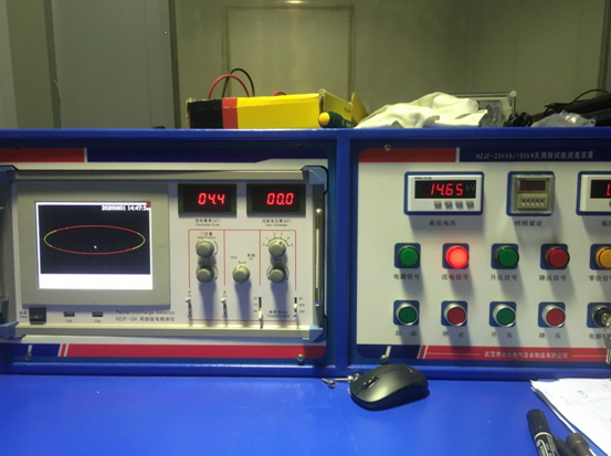 6月2日清晨,天漸陰沉,氣溫悶熱,似有暴雨。售后人員早早和客戶在現場記錄我們設備對應的電壓值和局放量以便后期對比,就帶著同一試品來到湖南另一家電力集團企業實驗室,希望能在這場大雨下下來之前解決客戶的困擾。