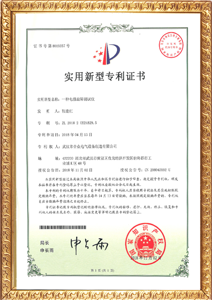 電力故障測試儀專利證書