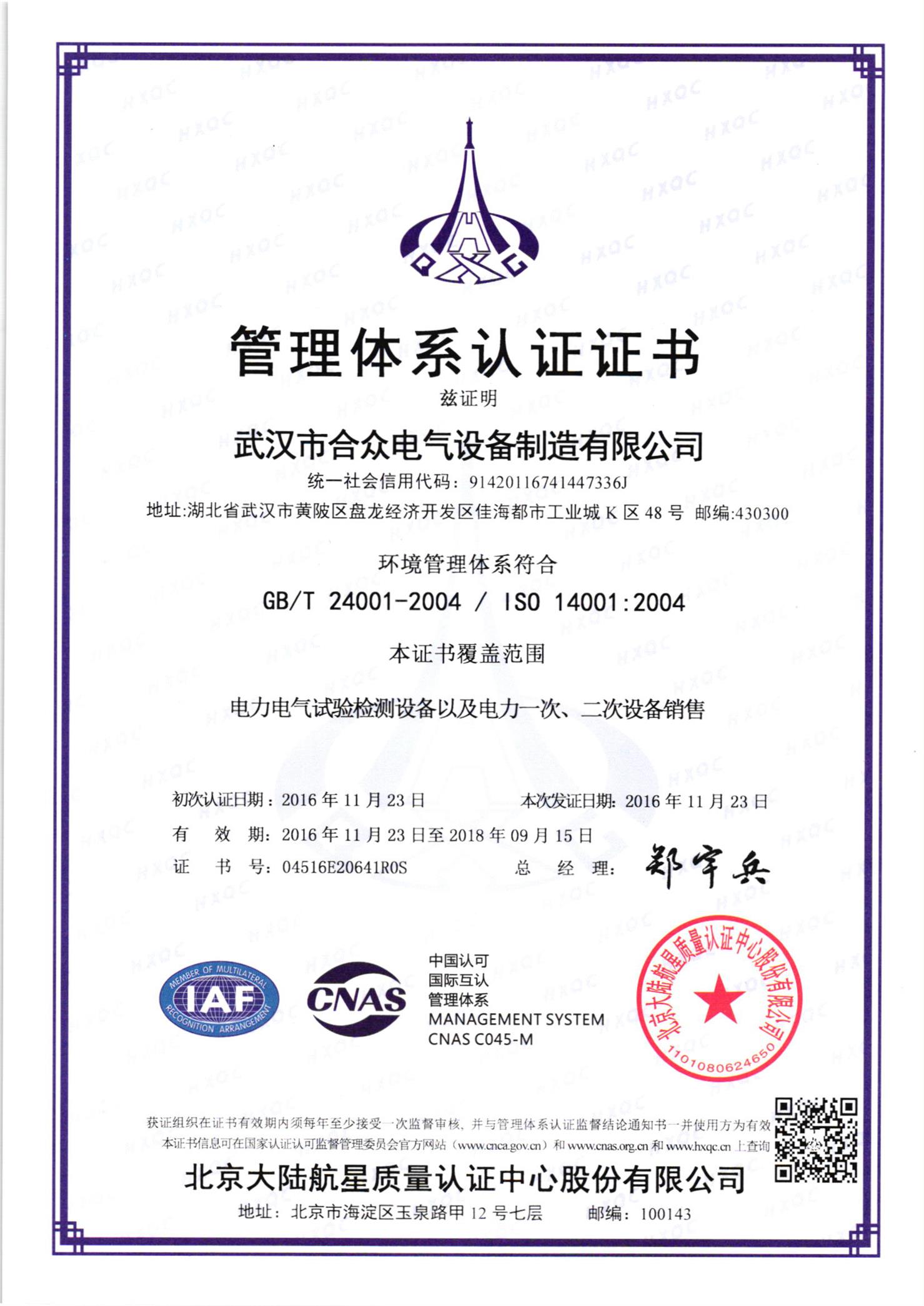 ISO14001環境管理體系認證 2018年度作者:合眾電氣發布時間:2018-03-23瀏覽量:12447 次字體顯示:【大】【中】【小】 ISO14001環境管理認證 上一篇: 承裝(修,試)電力設施許可證下一篇: ISO9001質量管理體系認證